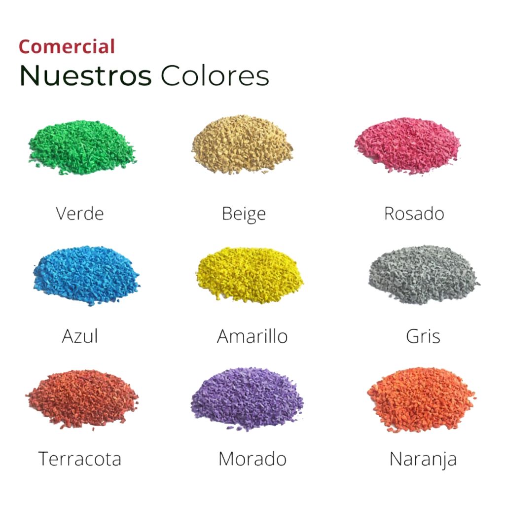 • Capa superior (1 cm): caucho EPDM virgen en colores vivos, aportando estética, diseño y durabilidad.